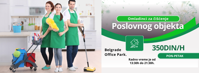 Potrebne su nam studentkinje(18-26 godina) za čišćenje poslovnog objekta Belgrade Office Park.